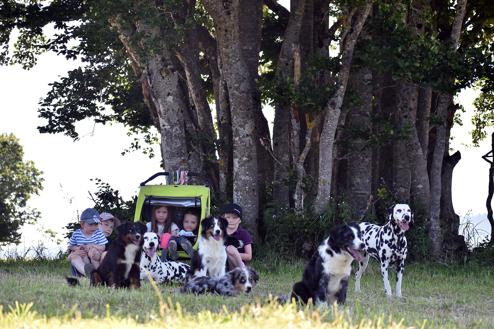 Ici, on vit en harmonie avec la nature, et les chiens font partie intégrante de la famille. Dans cette maison pleine de vie, nos cinq enfants participent aussi aux soins, aux jeux et à l’amour quotidien que nous portons à nos compagnons à quatre pattes.